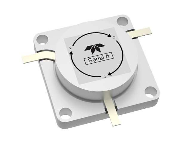 Isolators are a derivative of the circulator specifically used to protect other RF components from excessive signal reflection. When a circulator is configured as an Isolator its 3rd port is terminated by a matched load, and the device functions as a unidirectional gateway / transmission line. Energy will propagate from the device’s input port to the output port, while energy travelling in the reverse direction is passed to the load where it is dissipated as heat.